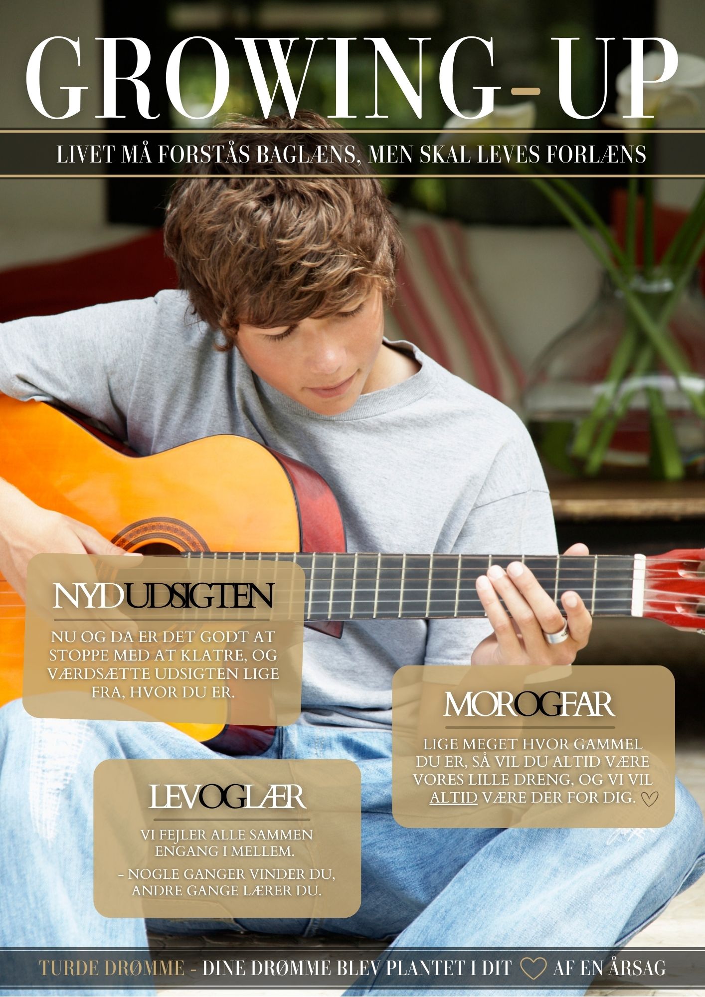 Konfirmanden (eller nonfirmanden) placeres på forsiden af plakaten, som er designet med både stil og personlighed. Plakaten kombinerer et flot, moderne udtryk med kloge ord og inspirerende budskaber, som man gerne vil give med videre på livets vej.