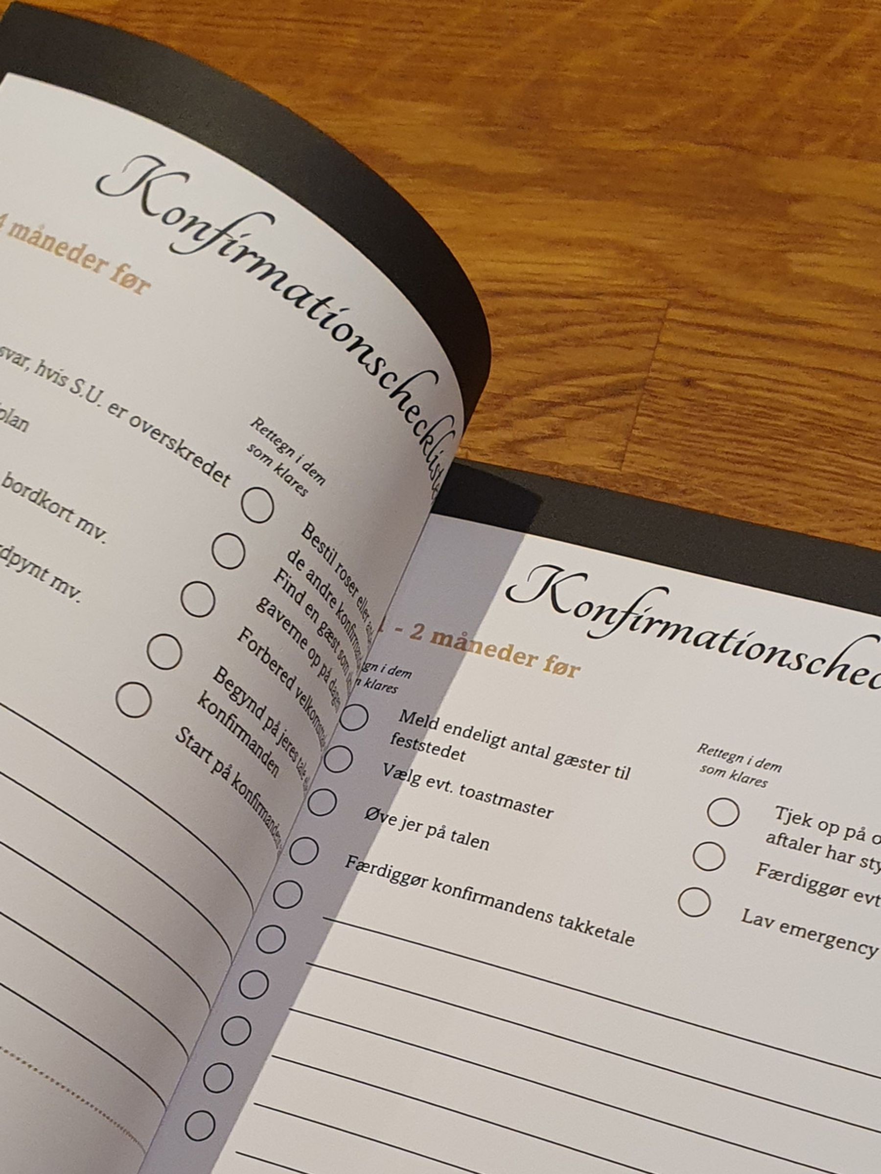 👉 Planlægningsbog Konfirmation – den nemme vej til vellykket planlægning af konfirmation.