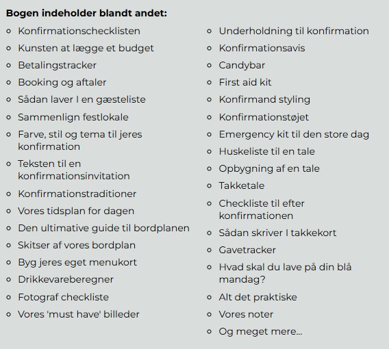 👉 Planlægningsbog Konfirmation – fordi en velplanlagt konfirmation giver mere tid til at nyde dagen.