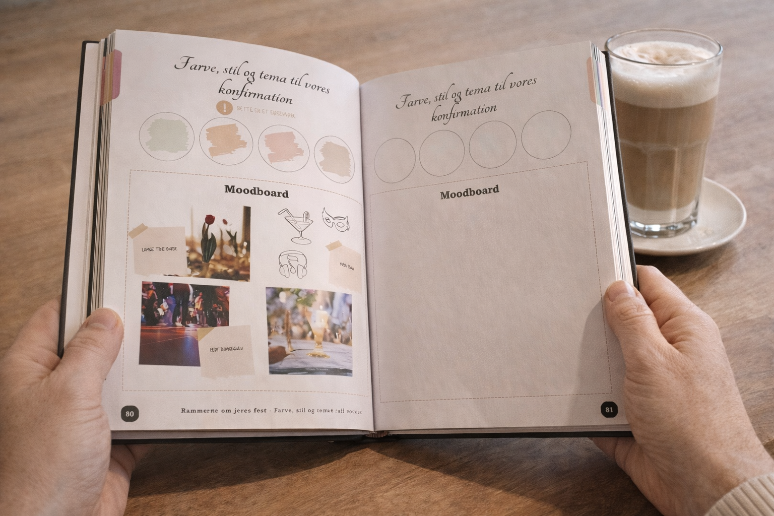 Med Planlægningsbog Konfirmation får I 230 gennemtænkte sider, der hjælper jer trygt gennem hele konfirmationsplanlægningen – fra første idé til sidste takkekort.