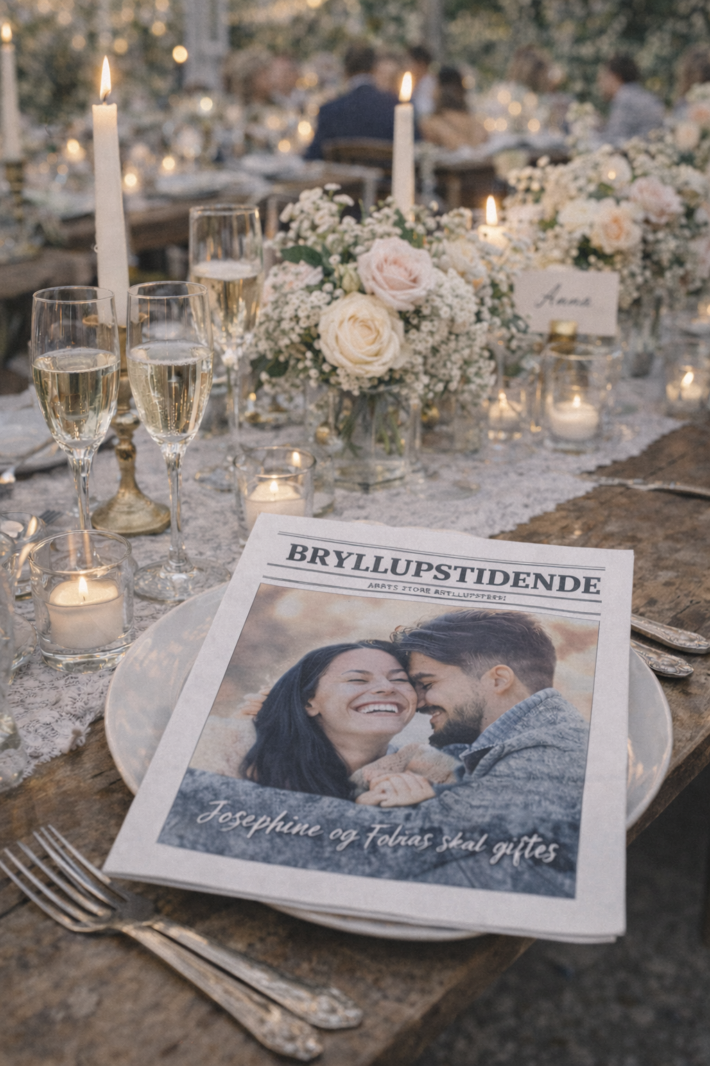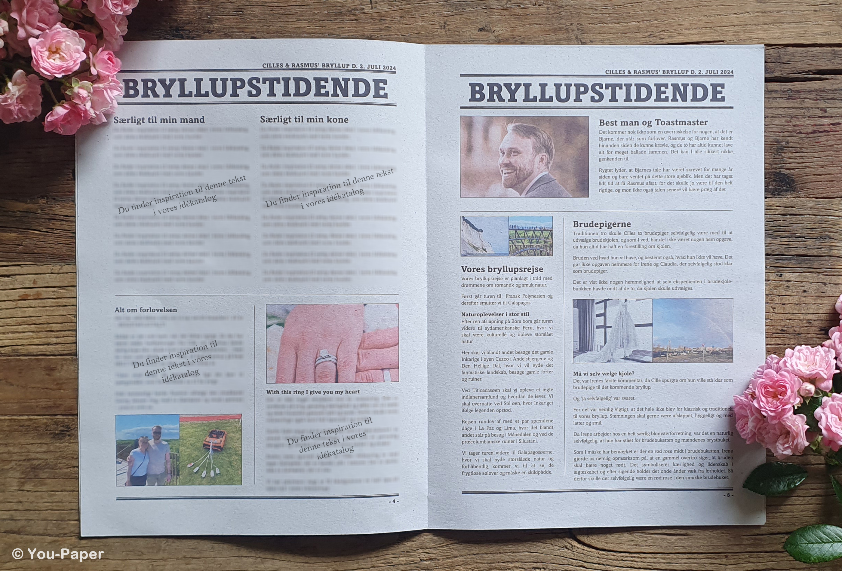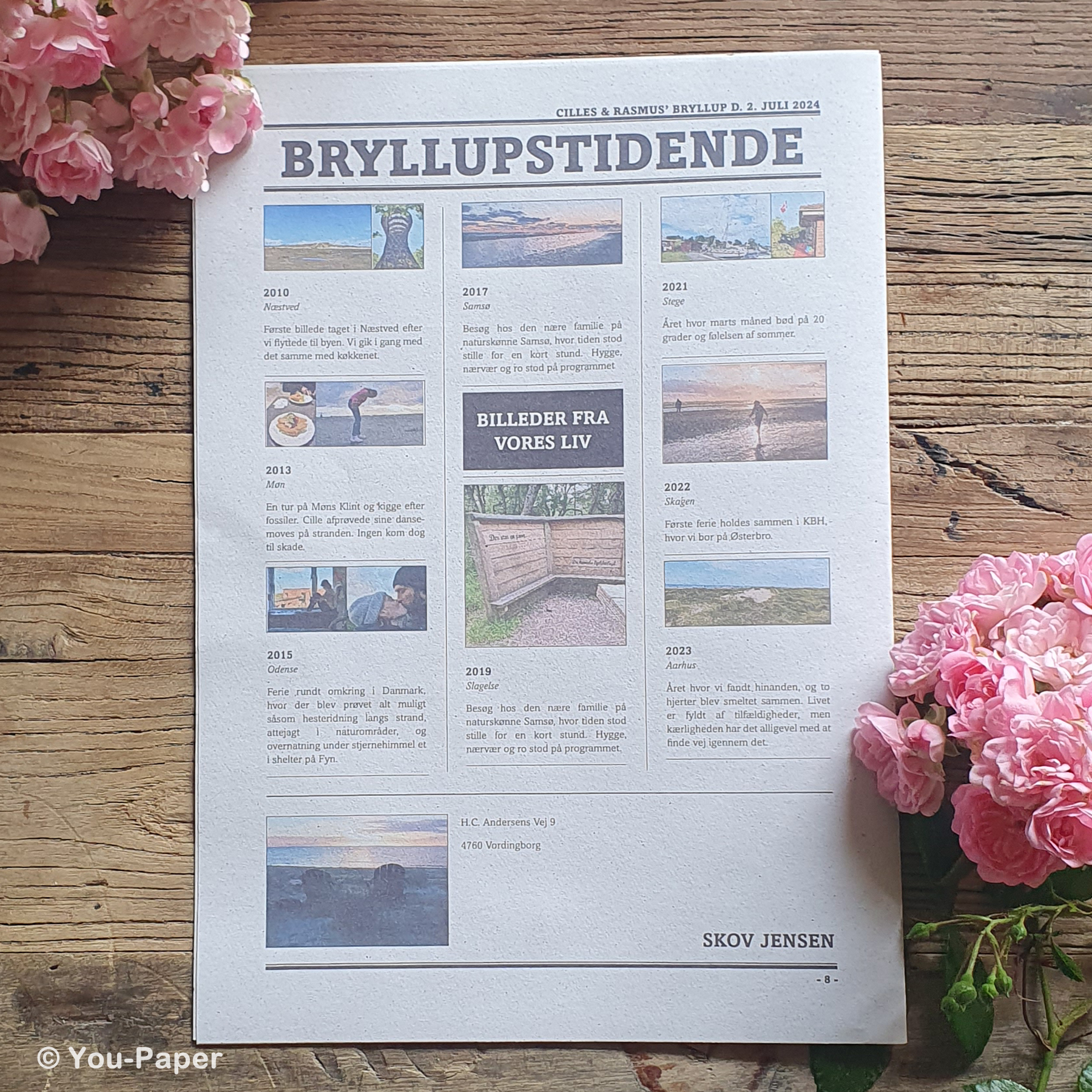 Flot trykte aviser på 8 sider, der leveres i stilren æske – klar til festen.