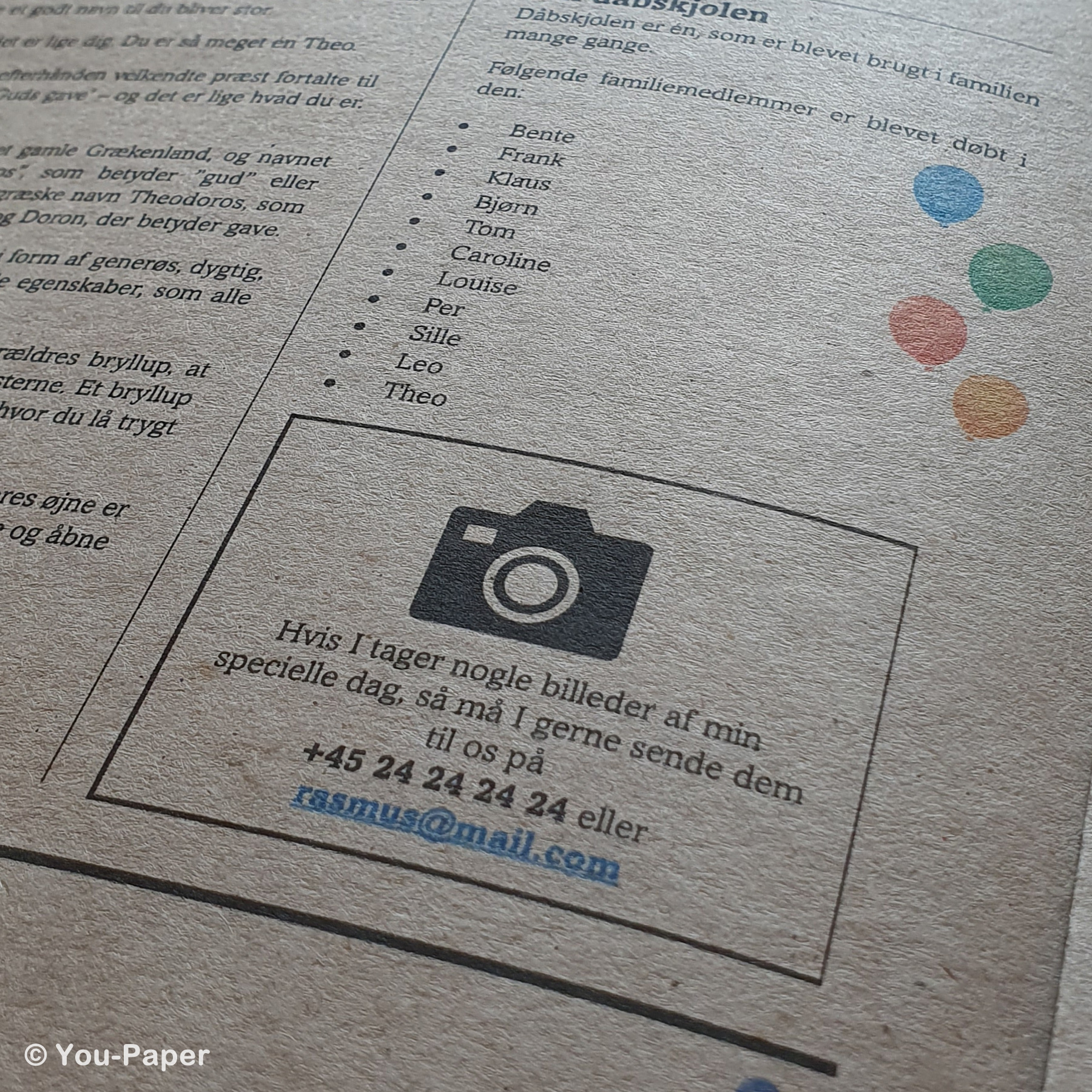 Med Dåbstidende får I muligheden for at takke jeres gæster for at være en del af jeres søn eller datters store dag og fortælle om alle de særlige øjeblikke i deres liv.